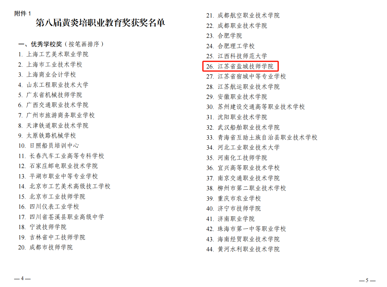 据悉,黄炎培职业教育奖是由中华职业教育社创设,经中共中央、国务院专项审核通过的职业教育领域唯一的全国性奖项,代表了我国职业教育界的最高荣誉。自2007年创设至今,每两年评选1次,旨在表彰弘扬黄炎培职业教育思想、为构建现代职业教育体系作出积极贡献的优秀单位和杰出个人。本届黄炎培职业教育奖共设立“优秀学校奖”50个、“杰出校长奖”50名、“杰出教师奖”100名、“杰出贡献奖”8个。