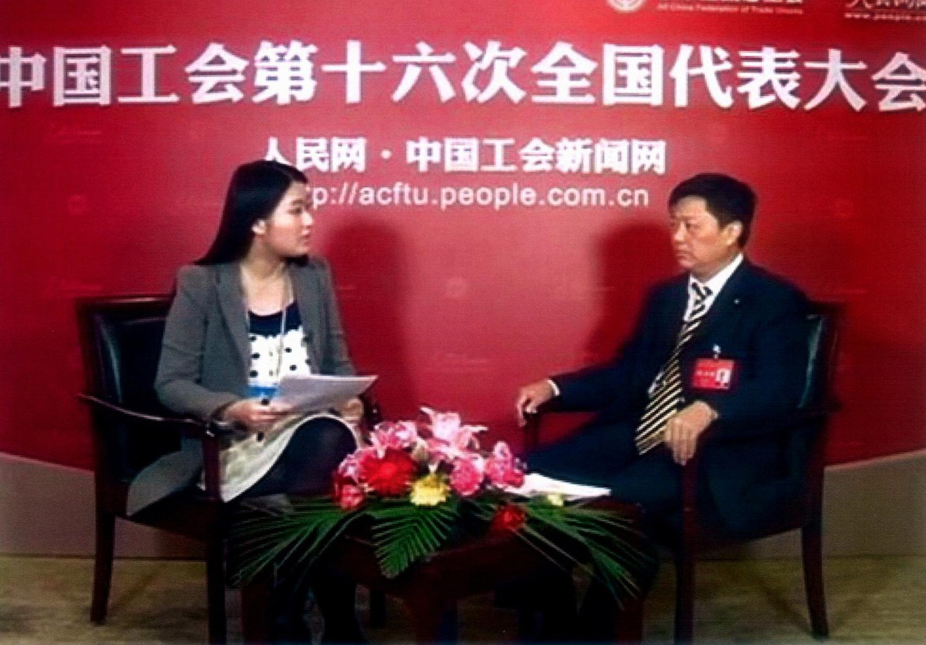 ▲2013 年入选全国总工会十六大代表,做客人民网接受采访
