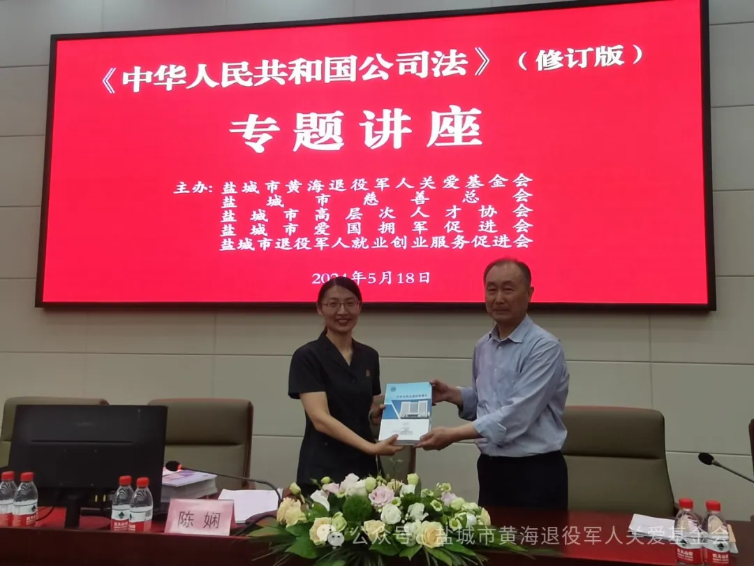 当日,陈娴还向市黄海退役军人关爱基金会等会员企业赠送了有关《公司法》书籍。