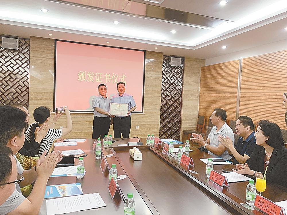 大庆市让胡路区委副书记、区长孙钊向韩正海颁发荣誉证书。 施海燕 摄