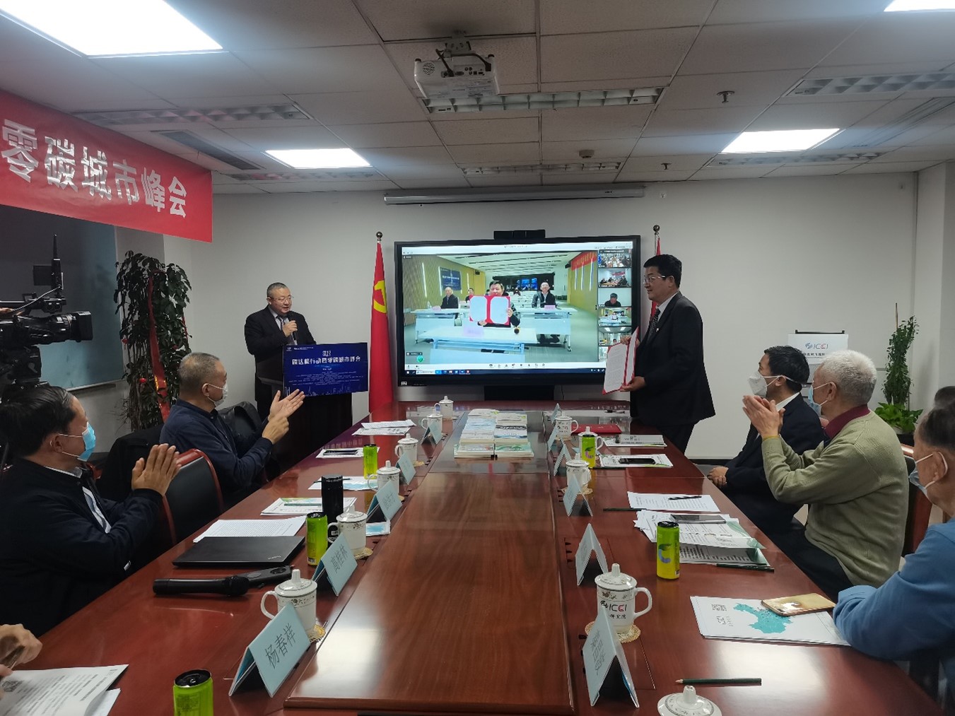 会议现场在线签订盐城市高层次人才协会与国合华夏城市规划研究院的战略合作协议。