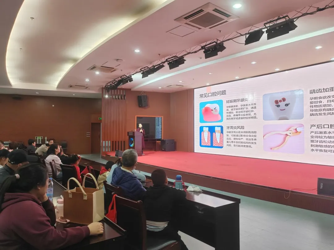 讲座中,徐医生以“全生命周期口腔健康管理” 为核心主线,结合不同年龄段口腔生理特点与常见问题,分层拆解养护重点。针对儿童龋齿预防,她引用专业研究数据强调“窝沟封闭可降低儿童龋齿发生率 60%~90%”明确儿童 6 岁左右萌出第一恒磨牙时为封闭最佳时机;围绕青少年正畸,她指出“11-13 岁是青少年正畸黄金期” 等实用知识点;面向中老年群体,她详细讲解牙周病防治要点,同时揭示口腔疾病与心血管疾病、糖尿病的关联让现场观众深刻认识到“口腔健康即全身健康”的重要性。